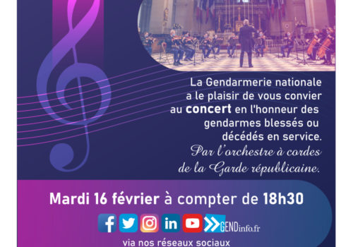 Ce concert caritatif sera retransmis le 16 février à partir de 18h30 sur la chaîne Youtube Gendarmerie nationale.