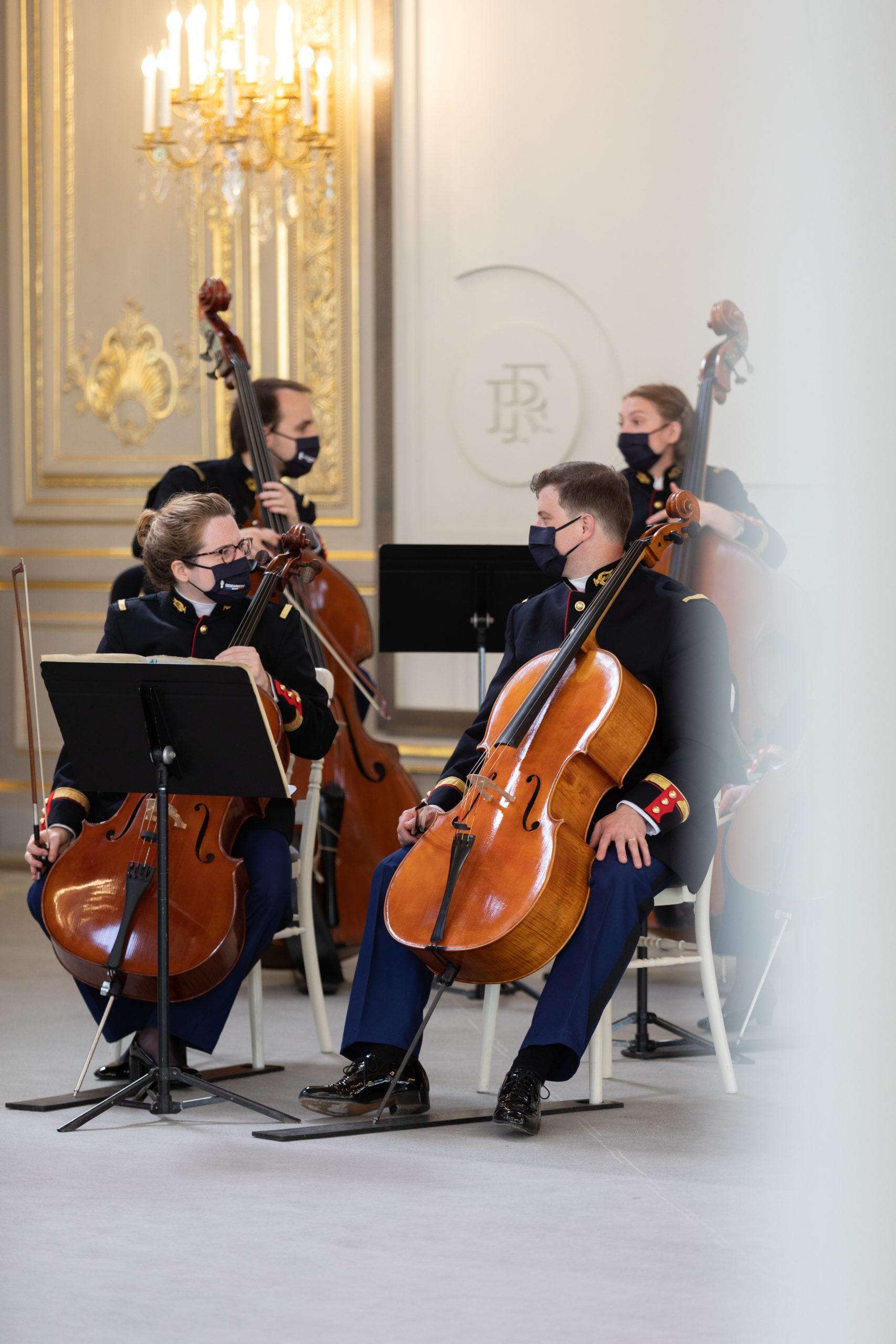 Mais vous remarquerez sûrement le lieu dans lequel cette vidéo a été tournée : la salle des fêtes du Palais de Élysée ! Un lieu habituel pour nos musiciens à cordes, puisque c’est ici qu’ils jouent lors des dîners d’État.